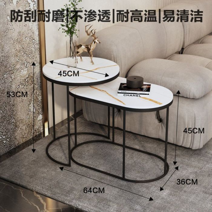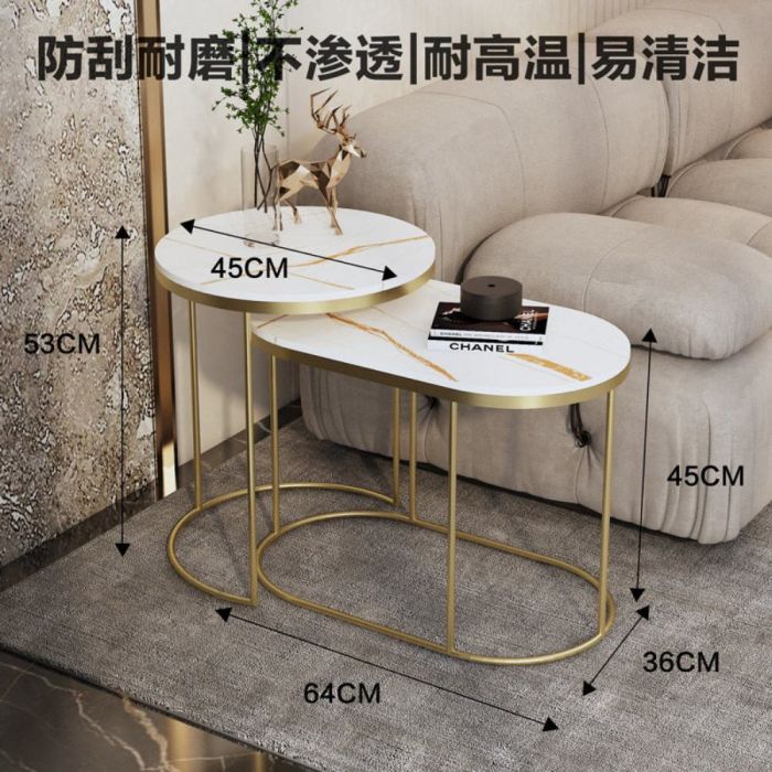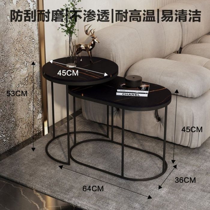 - طقم 2 طاولة جانبية متداخلة من حجر صناعي مع إطار فولاذي