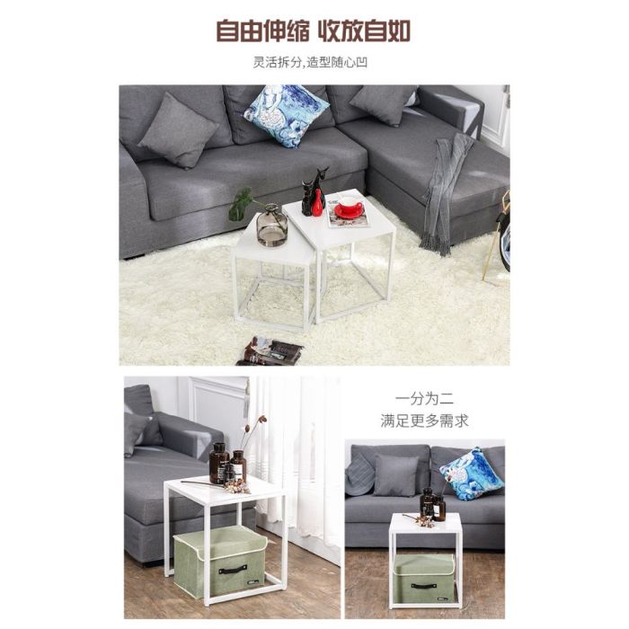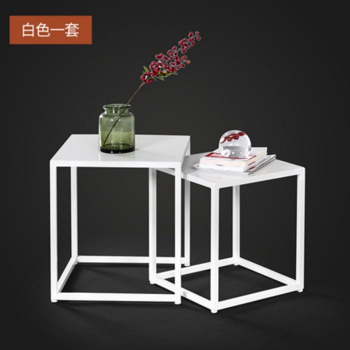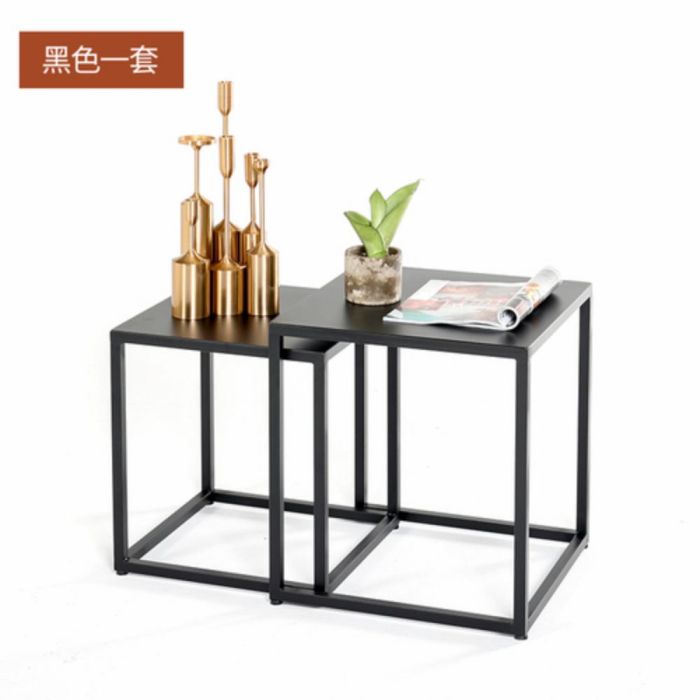 - طقم 2 طاولة جانبية مربعة بتصميم متداخل بإطار حديد