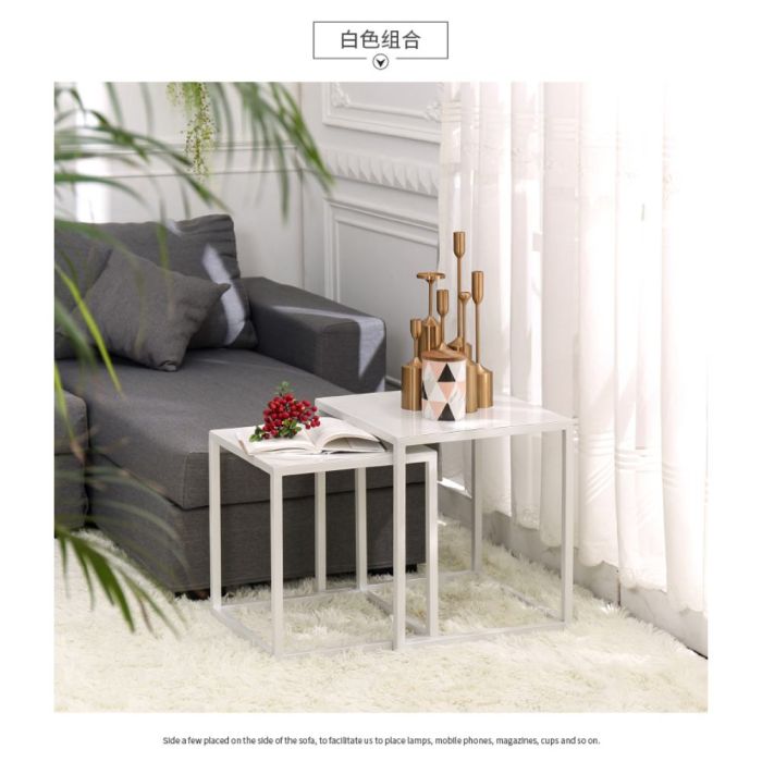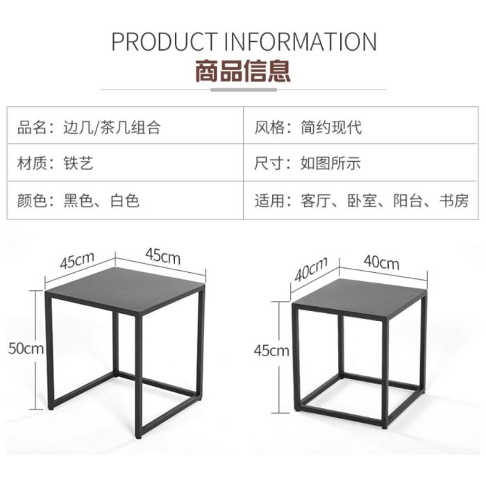 طقم 2 طاولة جانبية مربعة بتصميم متداخل بإطار حديد مصنوع من هيكل معدني متين، تصميم بسيط وأنيق يمنح المساحة لمسة عصرية، يمكن استخدامهما معًا أو بشكل منفصل، ثابتتان وتتحملان الاستخدام اليومي بثقة