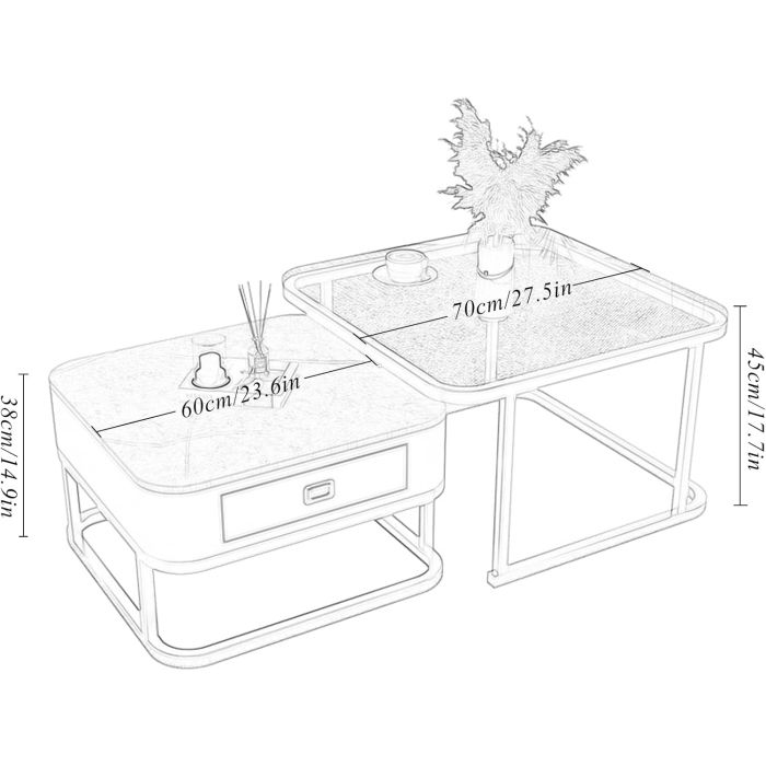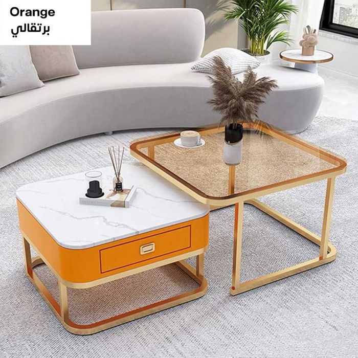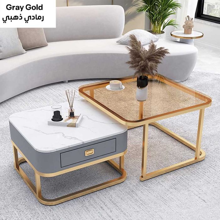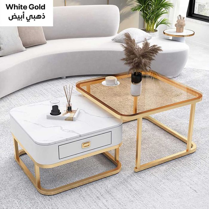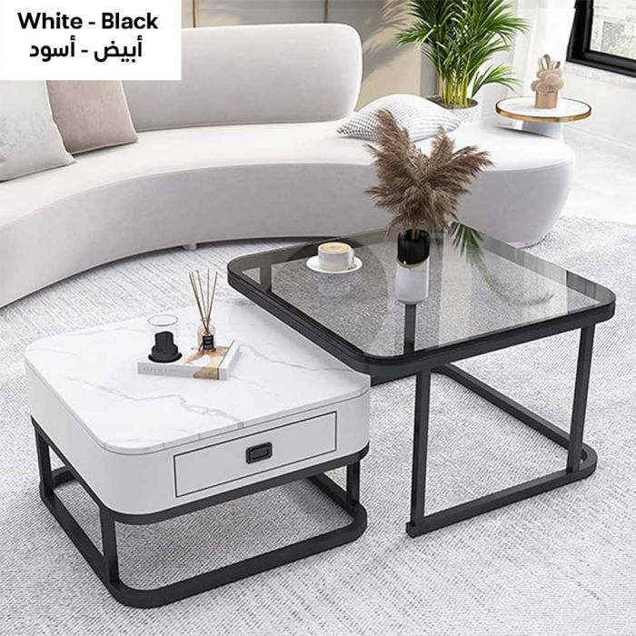 - تتضمن المجموعة طاولتي قهوة مربعتين متداخلتين