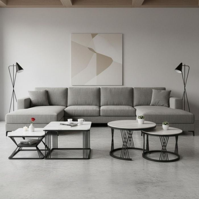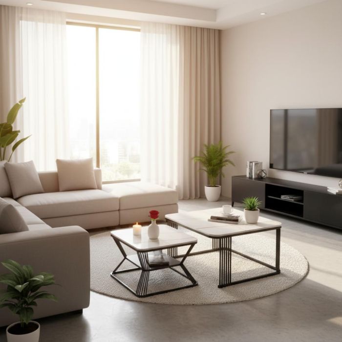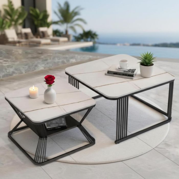 - طقم 2 طاولة جانبية مربعة أو دائرية بتصميم متداخل