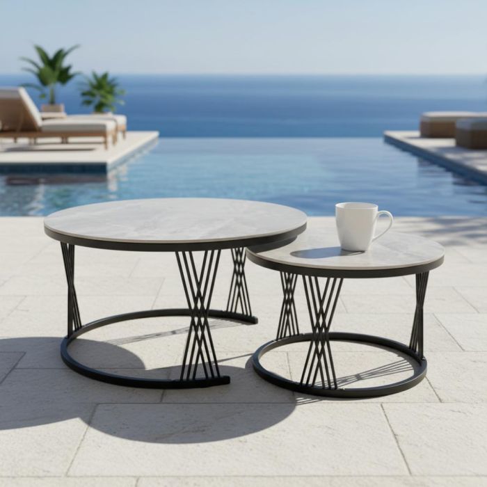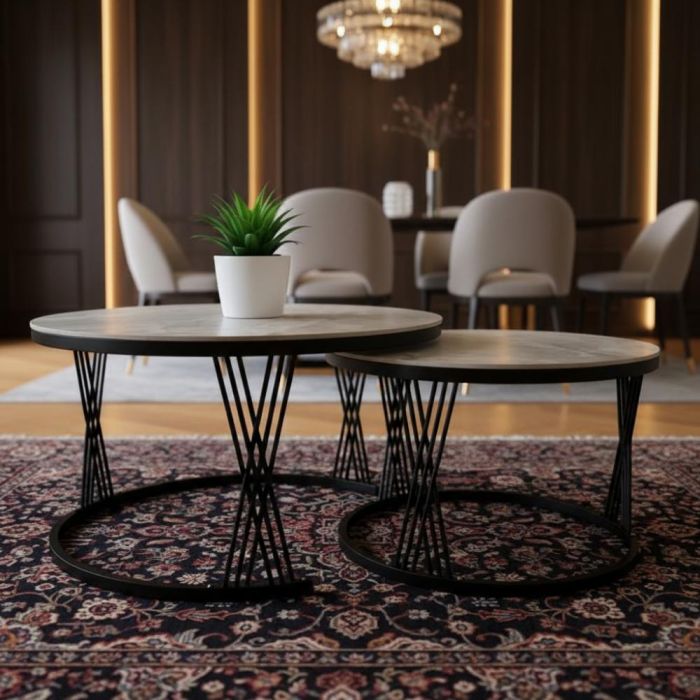 صممت هذه الطاولات لتجمع بين الأداء العملي والمظهر الجمالي، فهي مثالية للمساحات الصغيرة، حيث توفر سطح واسع دون شغل مساحة في الغرفة. ضعهما معًا للحصول على مظهر متعدد الطبقات أو استخدمهما بشكل منفصل في مناطق مختلفة. مع إطار معدني متين ومقاوم للصدأ وسطح رخام أملس سهل التنظيف