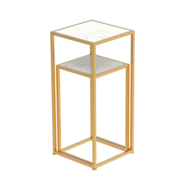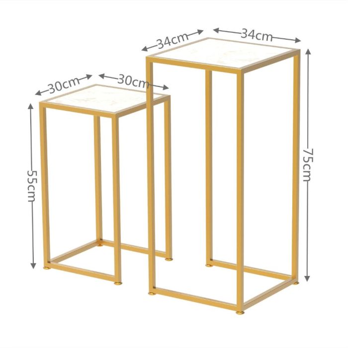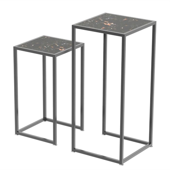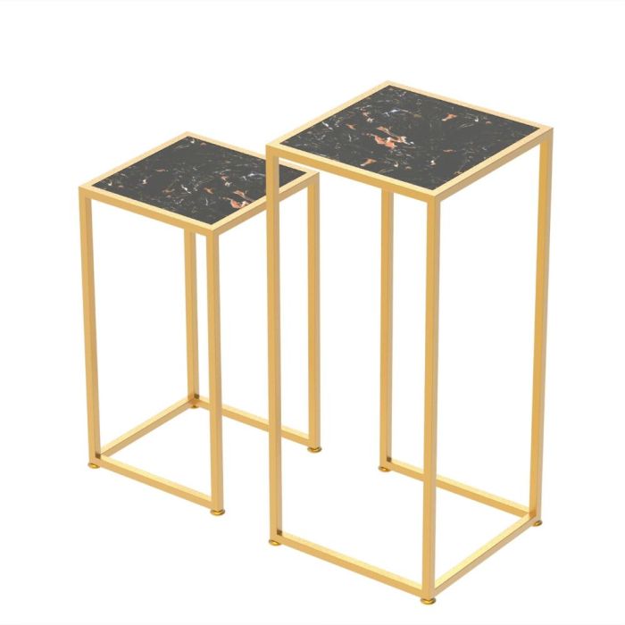 - طقم 2 طاولة جانبية مربعة من الرخام مع إطار فولاذي