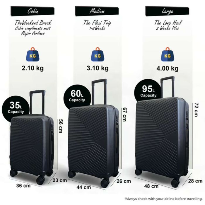 - الحجم الكبير 28" مقاس 48 × 28 × 72 سم مع وزن 4.00 كجم وسعة 95 لتر.