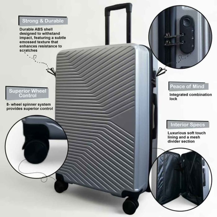 سافر بثقة مع هذه الحقيبة الصلبة المتينة التي تجمع بين القوة والأناقة وسهولة الحركة. مصنوعة من خامة ABS المتينة مع إطار معزز يوفر حماية عالية للمحتويات مع وزن خفيف وسهولة في الاستخدام. تمنحك العجلات الثمانية حركة سلسة بزاوية 360 درجة مما يسهل التنقل في المطارات والأماكن المزدحمة. يحتوي الجزء الداخلي المبطن على أحزمة تثبيت وجيوب بسحاب وفواصل شبكية لتنظيم الأمتعة بشكل مثالي. ومع المقبض التلسكوبي المريح والقفل المدمج، توفر لك هذه الحقيبة أداءً موثوقاً يناسب كل رحلاتك.