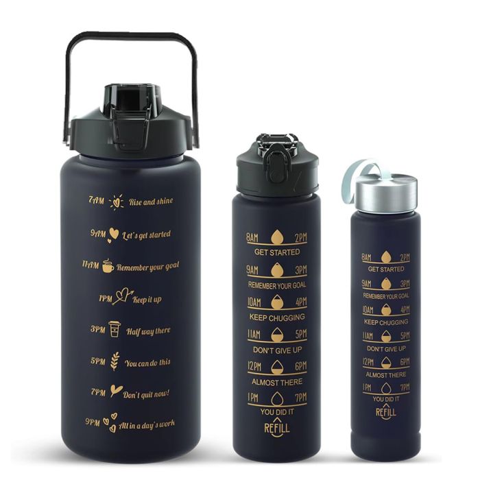 - مجموعة زجاجات مياه رياضية تحفيزية مانعة للتسرب 3 قطع
