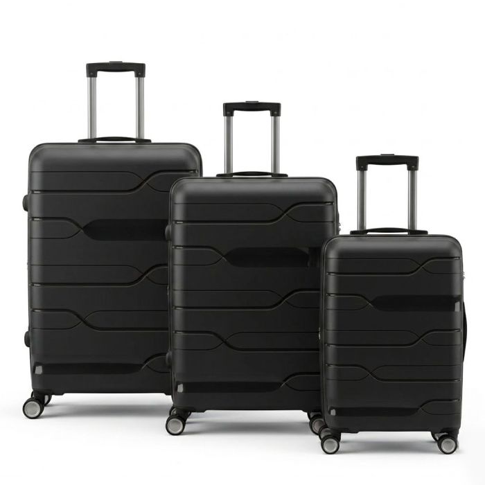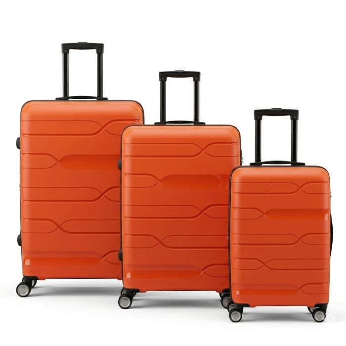 يوفر لك طقم الحقائب الصلبة PP حلاً مثالياً لتنظيم أمتعتك بكفاءة في كل رحلة بفضل تصميمه العملي المتين وعجلاته الدوارة الصامتة التي تجعل التنقل بين المطارات والمحطات أمراً سلساً ومريحاً في أي وقت وأي مكان