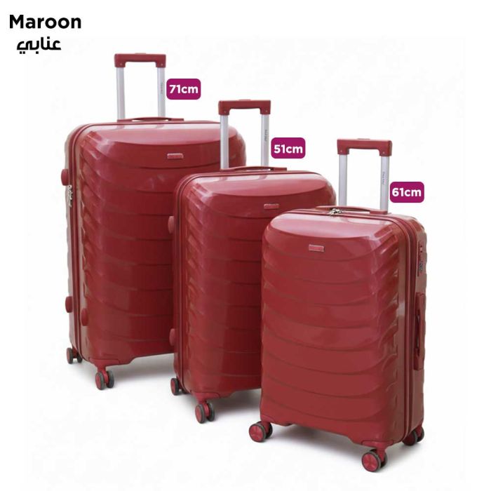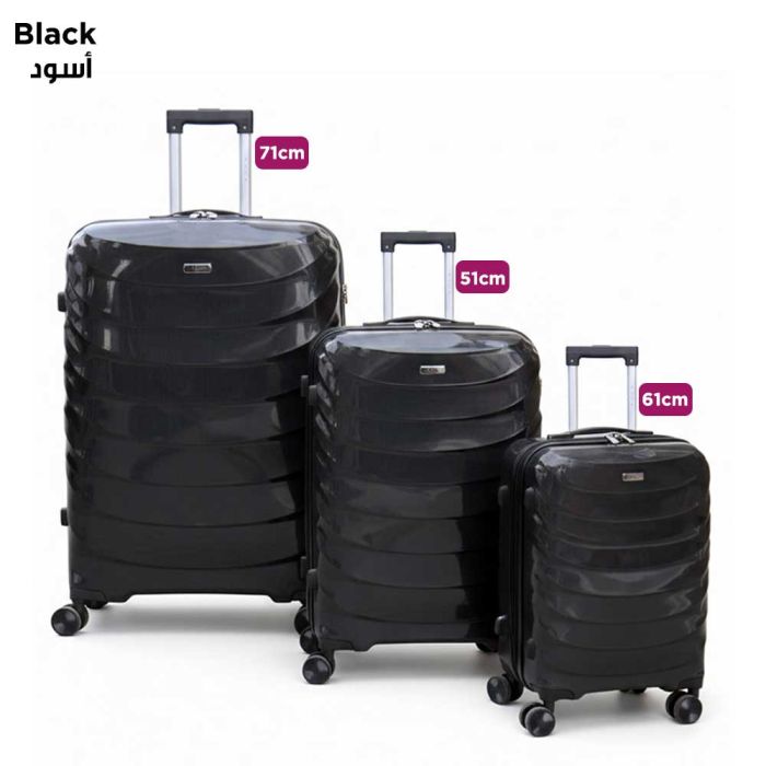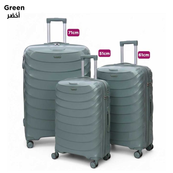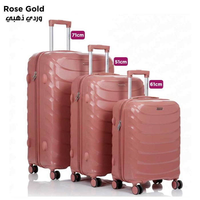 - طقم 3 حقائب سفر صلبة PP تروللي 51 + 61 + 71 سم من Royal King