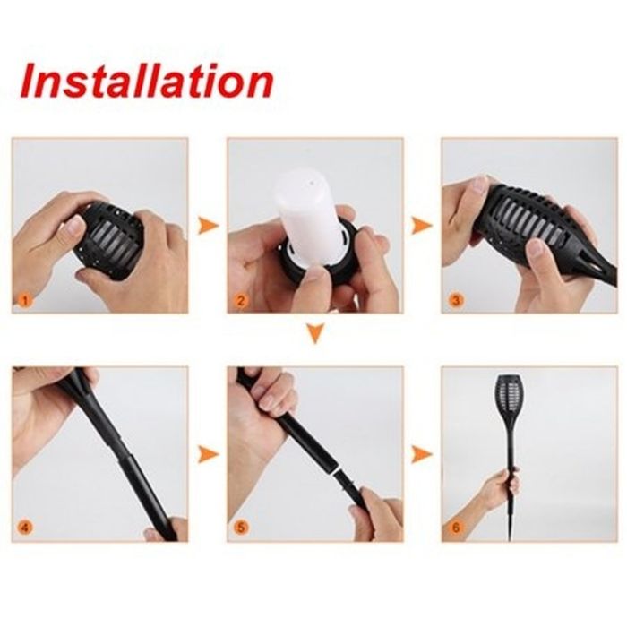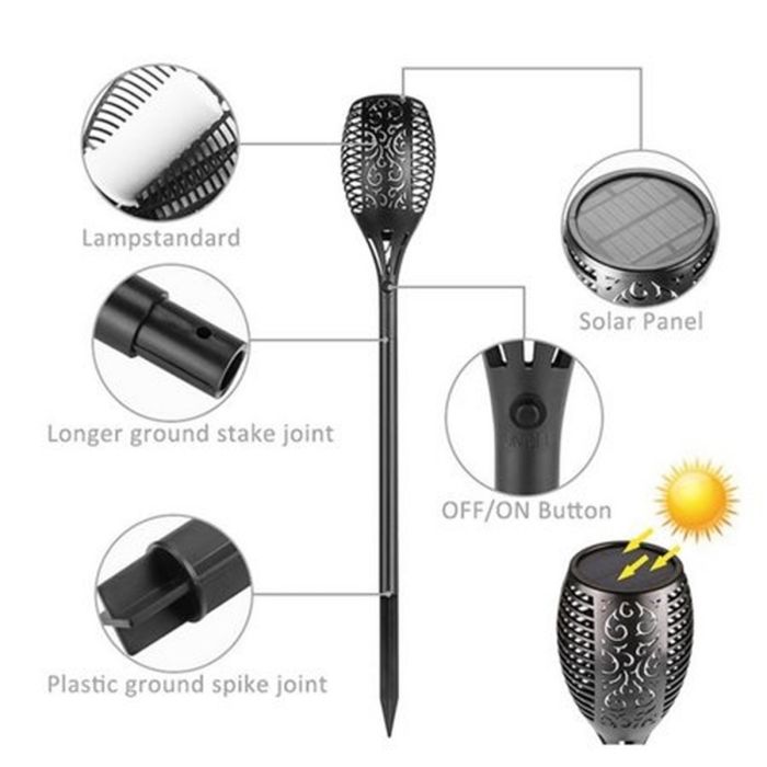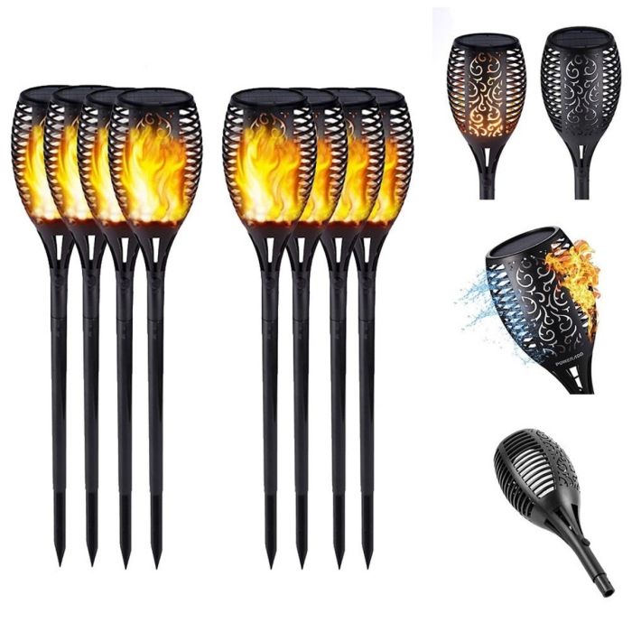 طقم 4 حبة إضاءة خارجية للحديقة بالطاقة الشمسية على شكل لهب مقاس 10 x 62 cm