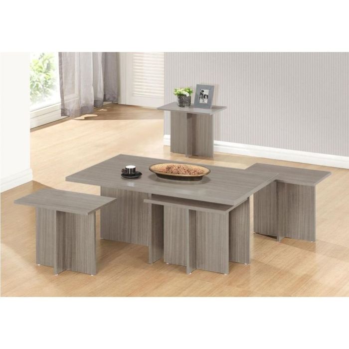 - الطاولات الجانبية متداخلة أسفل الطاولة الكبيرة لتوفير المساحة