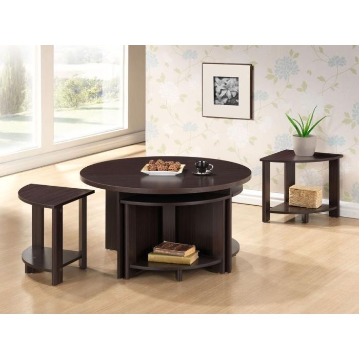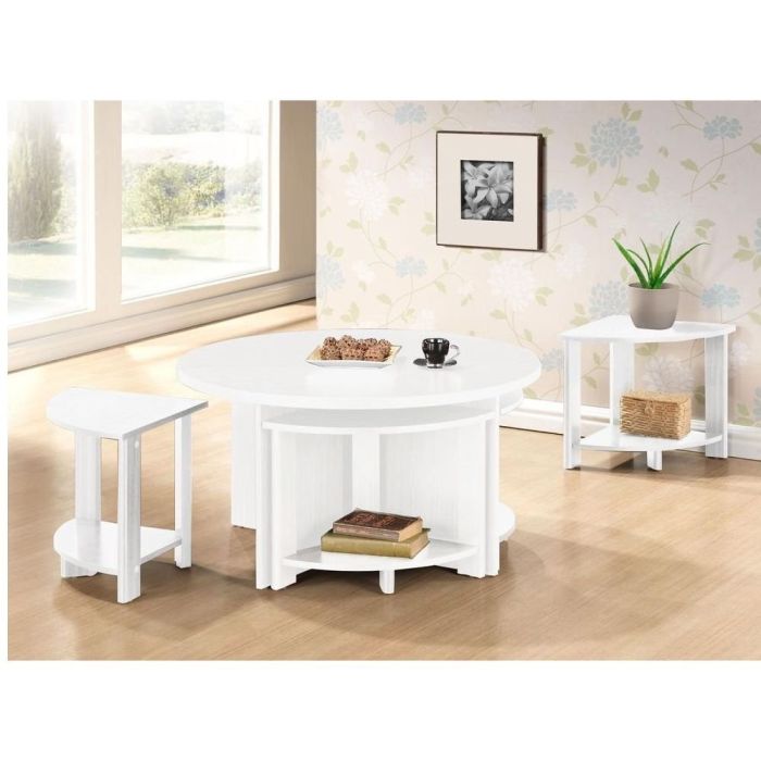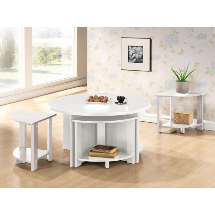- عدد القطع: 5 قطع (طاولة مركزية + 4 طاولات جانبية)