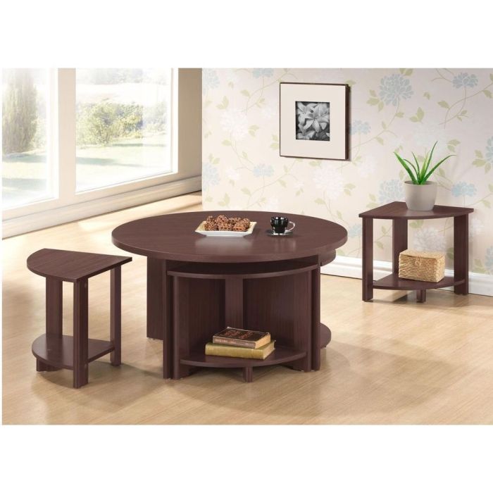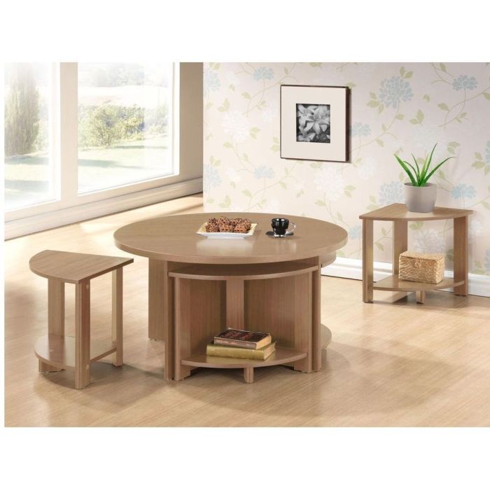 صفقة اليوم هي طقم طاولات جانبية خشبية متداخلة ماليزي 5 قطع