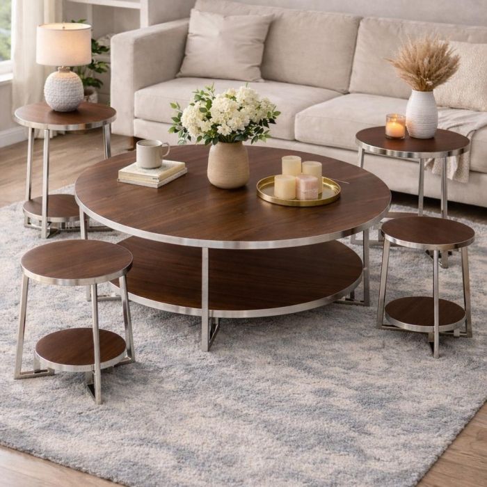 طقم طاولات جانبية دائرية 2 طبقة 5 قطع