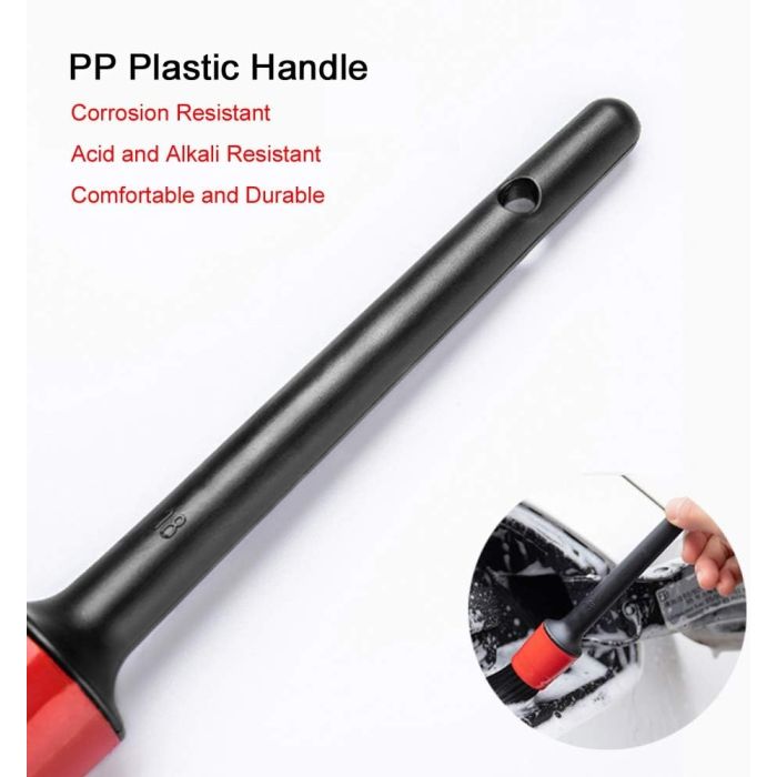 فرش التنظيف 5 أحجام مختلفة للفرشاة ، يمكنك اختيار أي واحد يناسب احتياجاتك ، بطول كافٍ للاستكشاف والوصول بسهولة إلى صواميل العروة أو المساحات الضيقة.