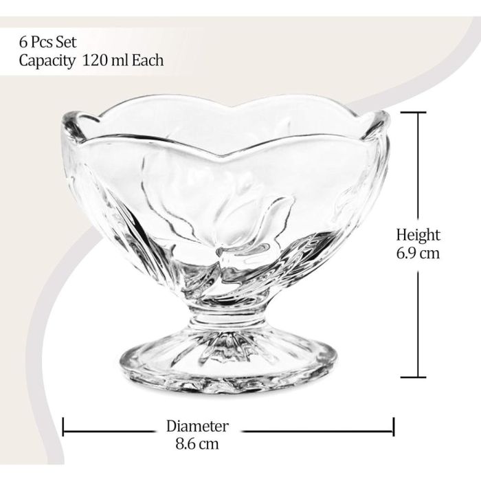 طقم أطباق آيس كريم زجاج 120 مل 6 حبة