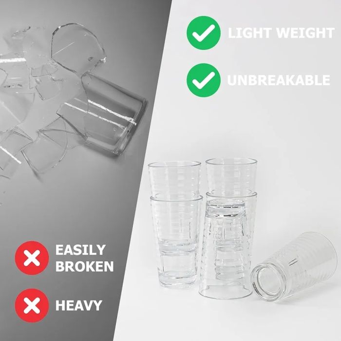 أضف لمسة من الألوان إلى مائدتك مع طقم الأكواب البلاستيكية القابلة لإعادة الاستخدام بسعة 385 مل. مصنوعة من بلاستيك متين وخفيف الوزن، مثالية للاستخدام اليومي في المنزل أو الرحلات والنزهات. سهلة التنظيف وتدوم طويلاً.