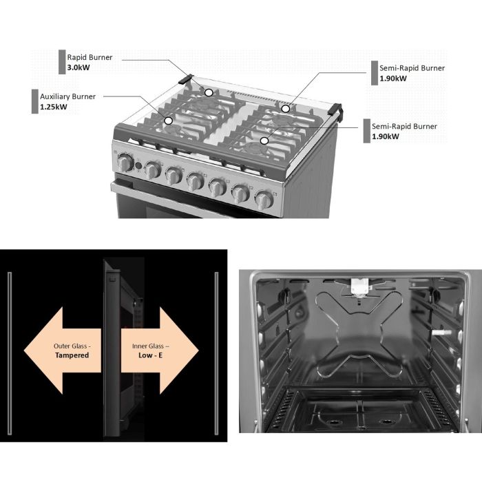 - باب الفرن: زجاج مزدوج مع زجاج Low-E