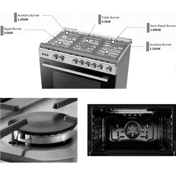 طباخ غاز 5 شعلات ستانلس ستيل 90 × 60 سم من Sharp