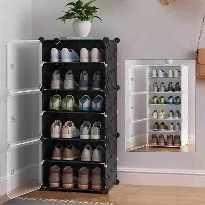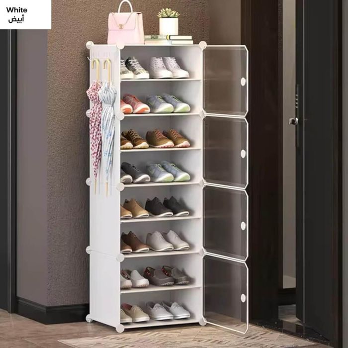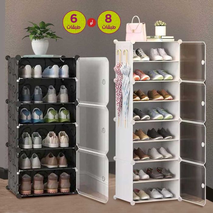- منظم أحذية بلاستيك 6 أو 8 طبقات مع أبواب