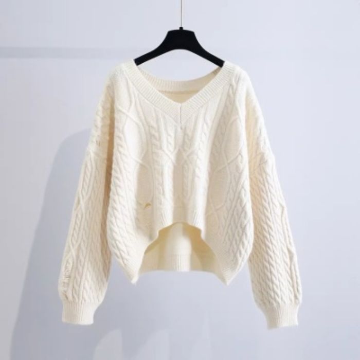 صفقة اليوم هي بلوفر قصير بياقة V للسيدات