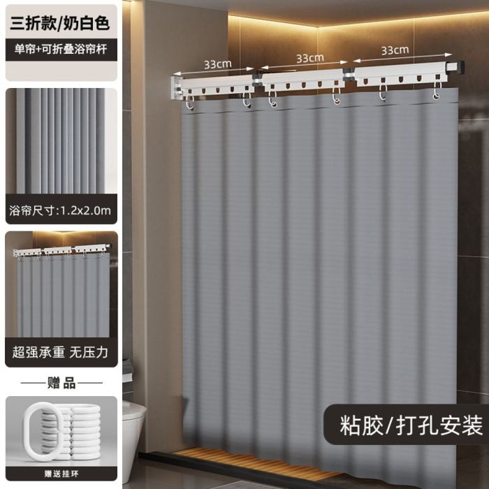 ستارة حمام مع ذراع قابل للطي وخطافات مصنوعة من بوليستر متين، توفر تغطية أنيقة وتنظيم عملي للمساحة، تصميم ذكي يسهّل الفتح والطي، مناسبة للاستخدام اليومي وتمنح الحمام مظهراً مرتباً ومريحاً