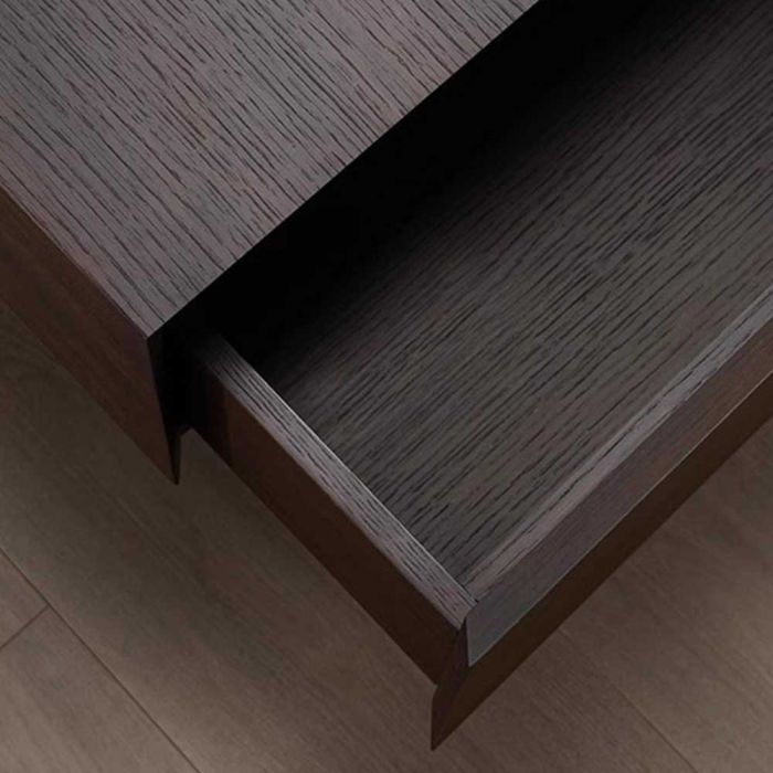 طاولة جانبية مع أدراج مصنوعة من خشب بلوط بملمس أنيق وعروق واضحة، مع أدراج انسيابية بإغلاق هادئ، تمنحك ترتيبًا راقيًا لأغراضك، وتناسب الصالة وغرفة النوم، وتضيف لمسة فخامة بسيطة