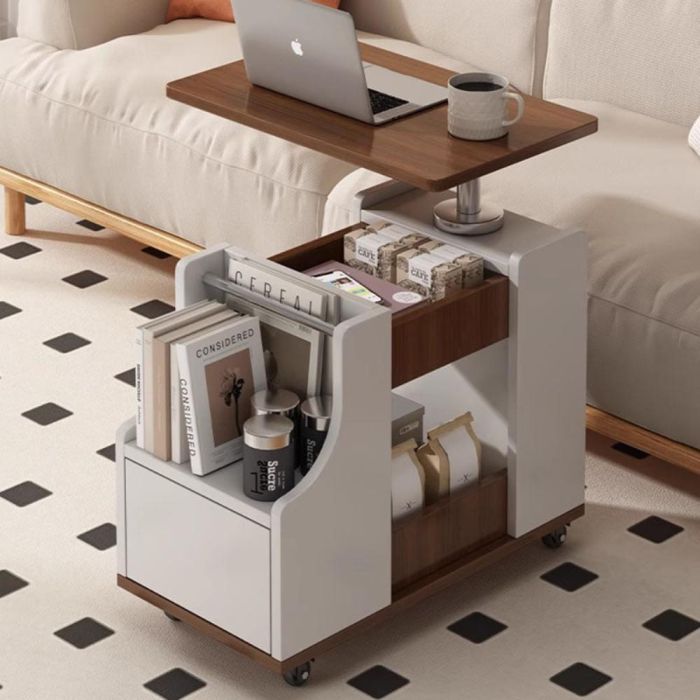 طاولة متعددة الاستخدامات تتكيف بسلاسة مع احتياجاتك، تتميز بسطح دوار مع ارتفاع قابل للتعديل ودرج واسع لتخزين أغراضك الشخصية