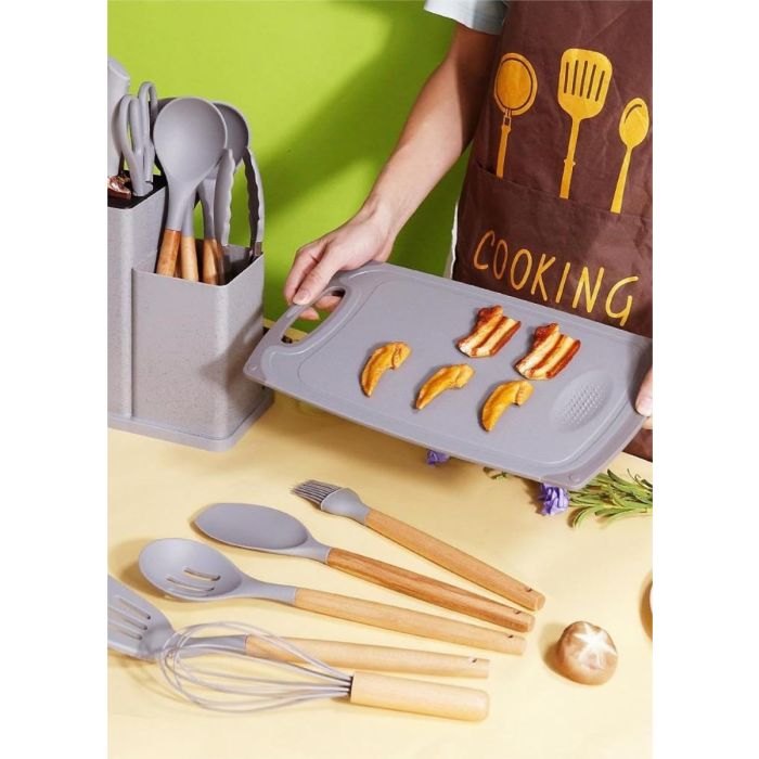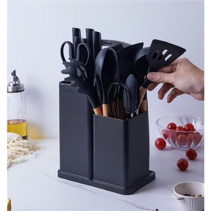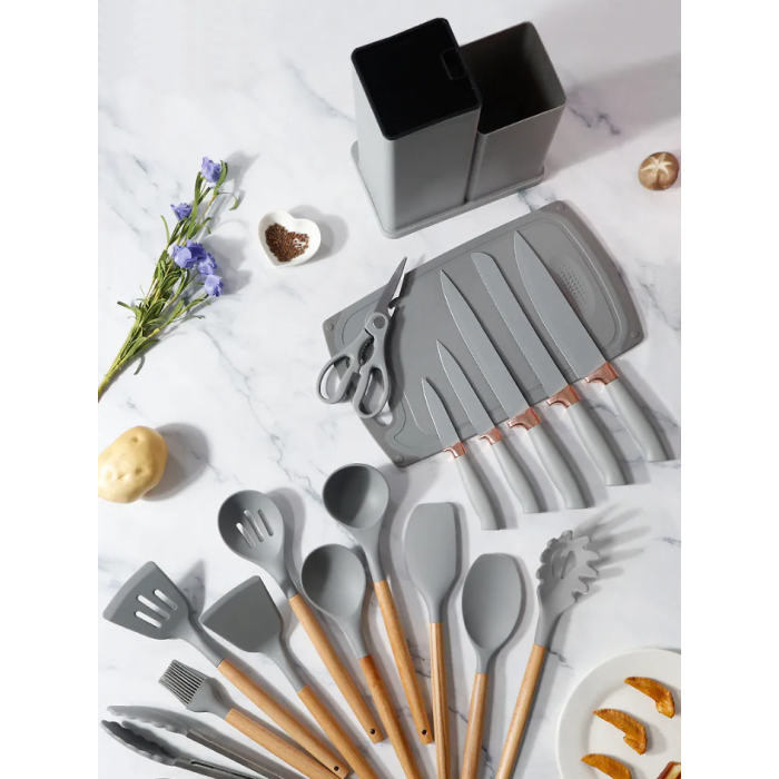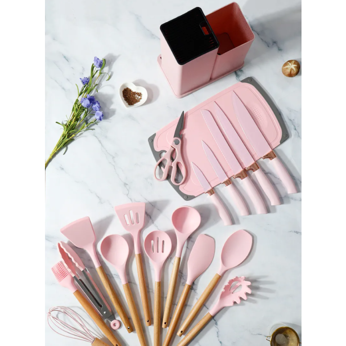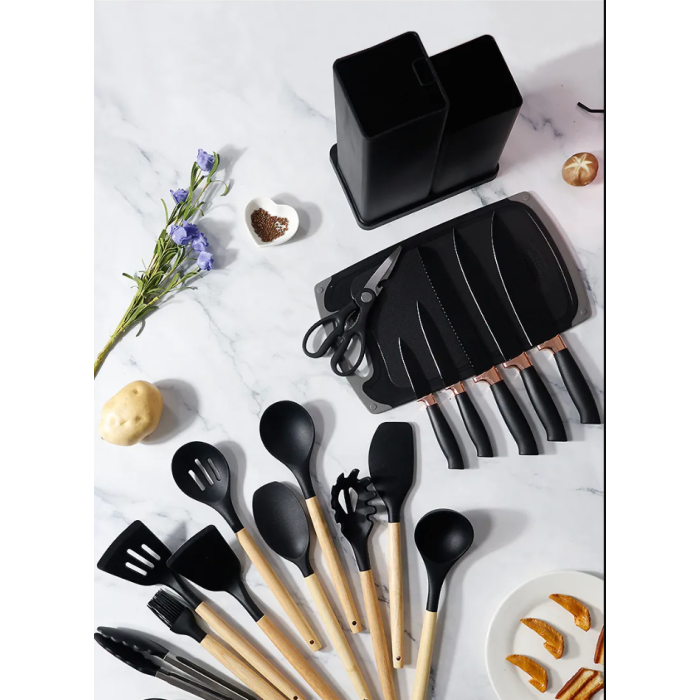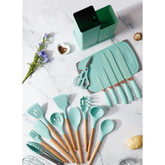 طقم أدوات مطبخ وسكاكين من السيليكون 19 قطعة