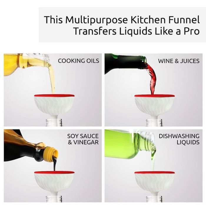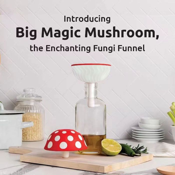 قمع سيليكون صغير على شكل فطر يسهل نقل السوائل والبهارات دون فوضى، خامة مرنة قابلة للطي لتخزين مريح، يناسب زجاجات وحاويات متعددة، تنظيف سريع بعد الاستخدام، تصميم لطيف يضيف لمسة جميلة لأدوات المطبخ، متين ويحتفظ بجودته.