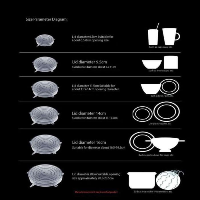 - مجموعة 6 أغطية مرنة متعددة الاستخدام