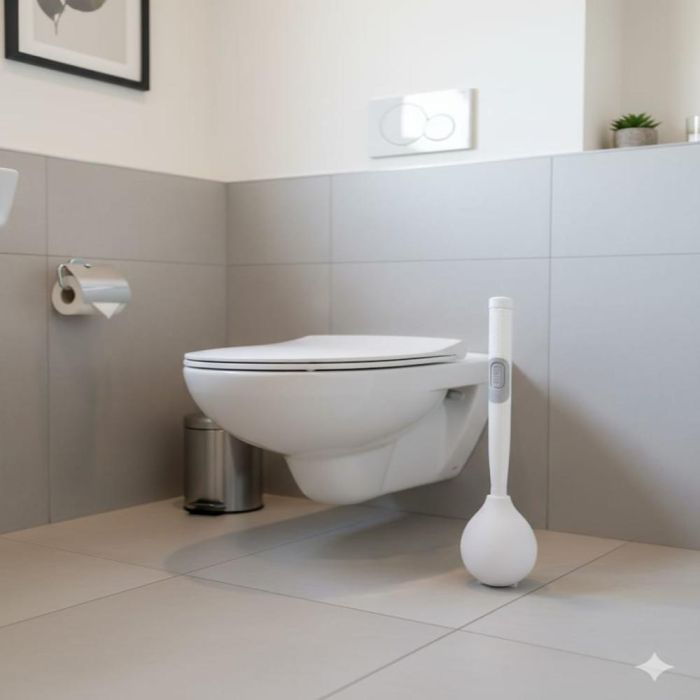 - رأس فرشاة مسطح ينحني لتنظيف جميع زوايا المرحاض، ويصل إلى الأماكن الصعبة بسهولة