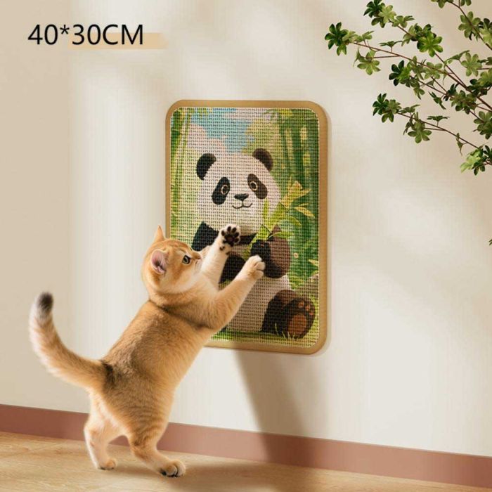 لوح خدش سيزال للقطط بتصميم Panda مصنوع من سيزال قوي، يمنح القطط سطح خدش مريح يشجعها على اللعب، يثبت بسهولة على الجدار مع ثبات جيد، يحافظ على جودته مع الاستخدام