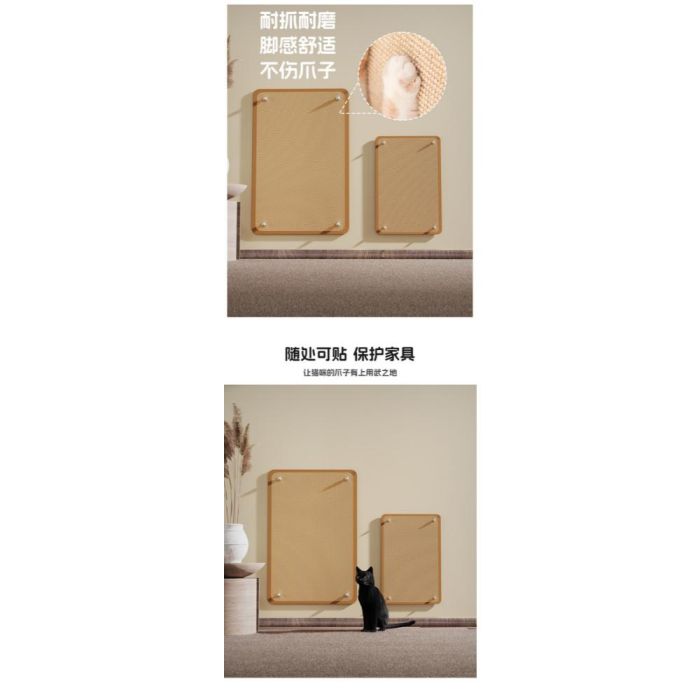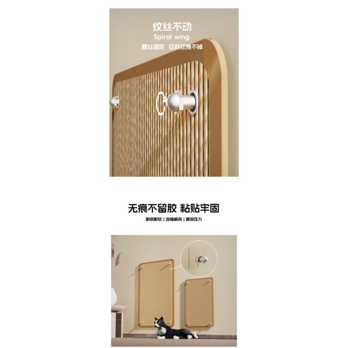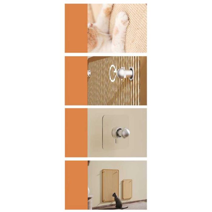 لوح خدش جداري سيزال للقطط مصنوع من سيزال طبيعي متين، يثبت بالبراغي مع لاصق بلا أثر لمنح ثبات قوي على الجدار، مما يوفر سطحاً مثالياً للخدش