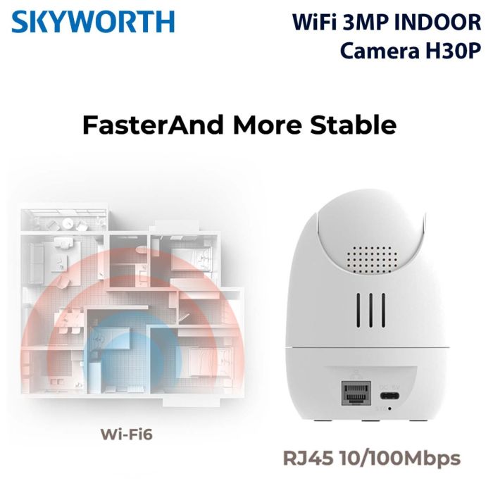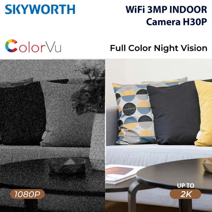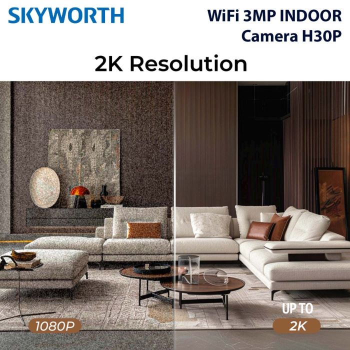 - كاميرا مراقبة داخلية ذكية H30P بدقة 3 ميجابكسل 2K من Skyworth