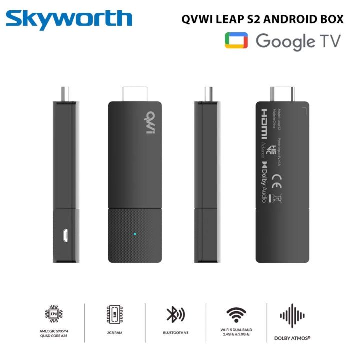 - جهاز QVWI Leap S2 تلفزيون جوجل ذكي لتشغيل الوسائط بدقة 4K من Skyworth