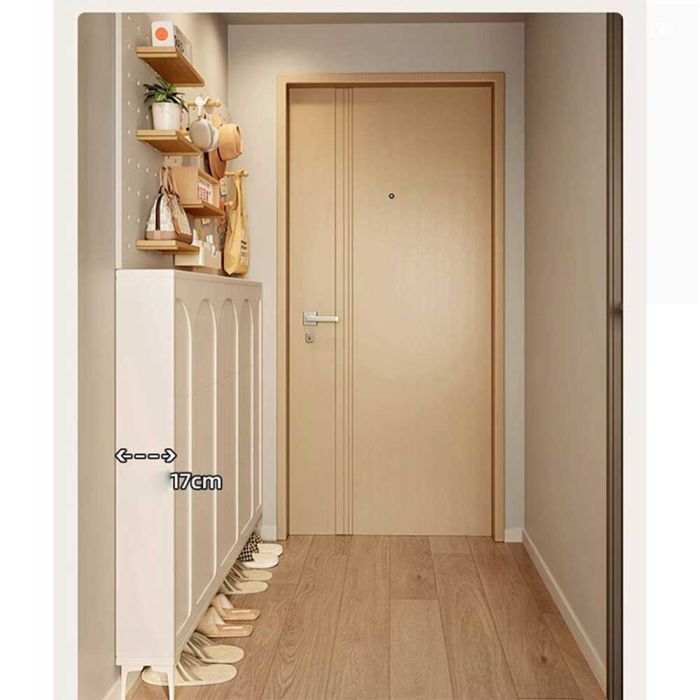 - منظم أحذية خشبي نحيف مع 6 أبواب