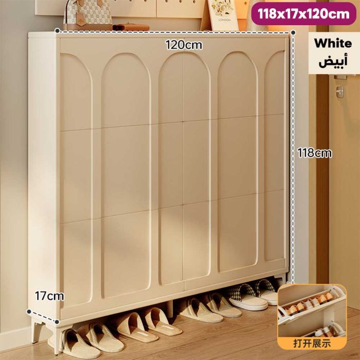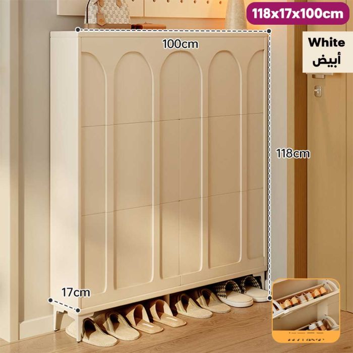 منظم أحذية نحيف متعدد الطبقات مصنوع من مواد متينة، يوفر سعة كبيرة بتصميم مائل مريح، يساعد على ترتيب الأحذية بذكاء ويوفر المساحة، مناسب للمداخل والغرف، ويتميز بسهولة السحب والاستخدام اليومي، ليمنح منزلك مظهراً أنيقاً ومنظماً.