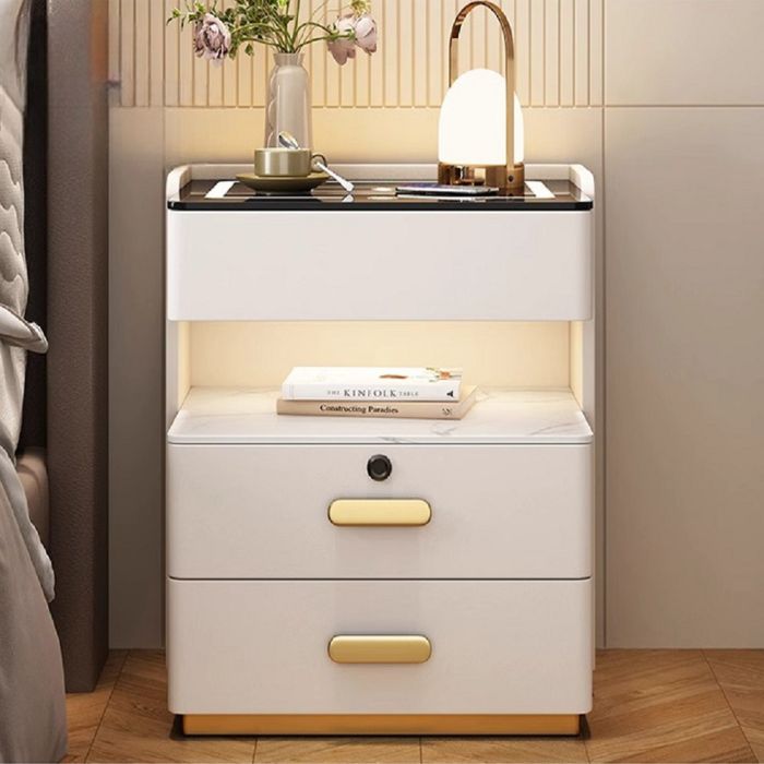 طاولة ذكية جانبية للسرير مع شحن لاسلكي وقفل ببصمة الأصبع ومكبر صوت