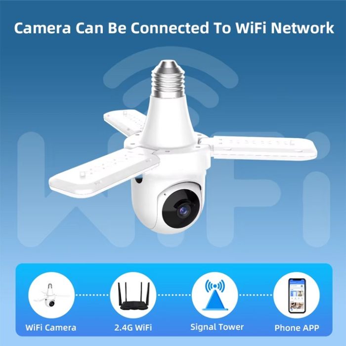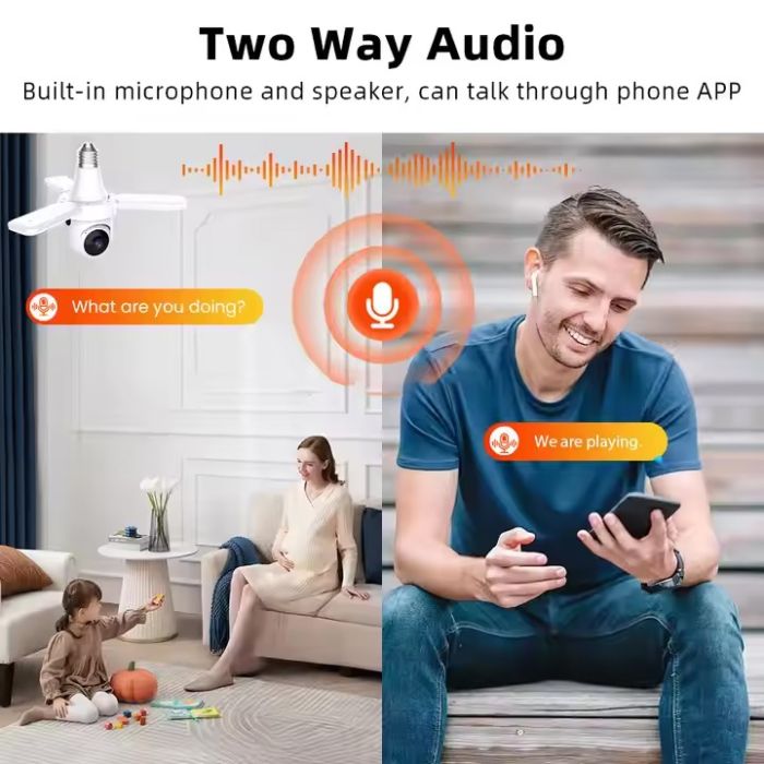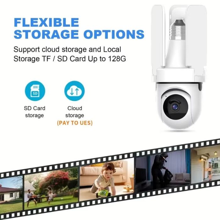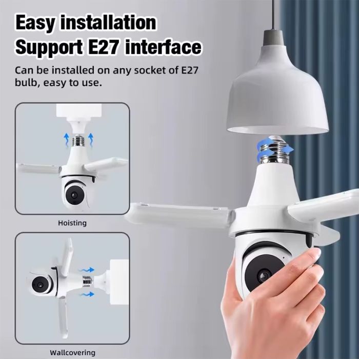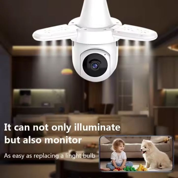 كاميرا Wi-Fi الذكية هي حل أمني متطور، تتلاءم بسهولة مع أي مقبس إضاءة E27. توفر رؤية أفقية كاملة بزاوية 360 درجة ورؤية رأسية بزاوية 90 درجة، كما توفر تغطية واسعة النطاق مع مراقبة فورية من خلال تطبيق هاتف مخصص. مزودة بتنبيهات لكشف الحركة، تُعلمك فورًا بأي حركة، مما يضمن حماية منزلك أو مكتبك أو متجرك. يضمن المصباح المدمج إضاءة ساطعة. بفضل الصوت ثنائي الاتجاه، يمكنك التواصل الفوري مع الزوار (أو تحذير المتسللين) مباشرةً من خلال تطبيق هاتفك. مع تقنية التتبع التلقائي، تتتبع الكاميرا أي حركة يتم اكتشافها، مما يوفر تغطية أمنية مُحسّنة. يضمن لك عدم تفويت أي لحظة.
