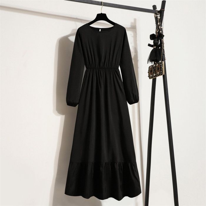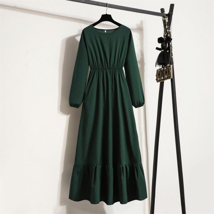 - تصميم طويل وأنيق بياقة دائرية