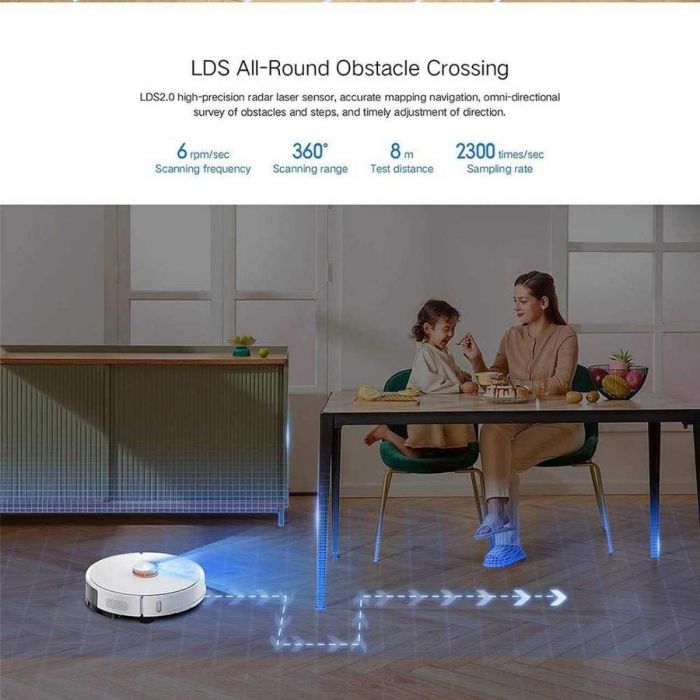 احصلي على تنظيف منزلي بدون عناء مع هذه المكنسة الروبوتية الذكية التي تجمع بين الشفط والمسح الجاف والرطب، وتستخدم تقنية الملاحة LDS SLAM والخرائط الذكية المدعومة بالتطبيق. قوة شفط قوية تصل إلى نحو 2700 Pa وبطارية 5200 مللي أمبير تمنح تشغيلًا حتى 150 دقيقة وتغطي مساحات واسعة في جلسة واحدة. خزان المياه الإلكتروني يتحكم تلقائيًا في توزيع الماء أثناء المسح، ويتم زيادة شفط الطاقة عند اكتشاف السجاد. تصميم مدمج وذكي مثالي للعائلات العصرية التي تطمح لتنظيف تلقائي بدون تدخل يدوي.