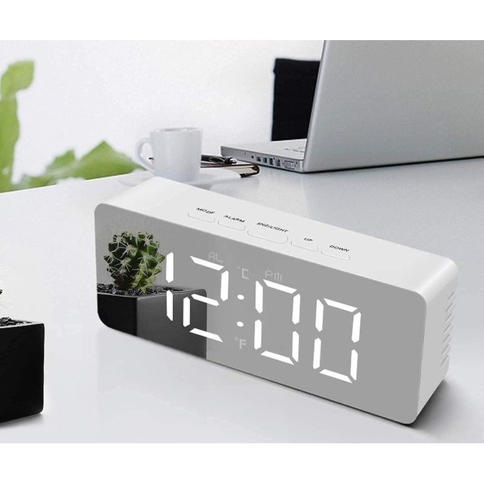 استمتع بتجربة ذكية وعصرية مع ساعة المرآة الرقمية التي تجمع بين التصميم الأنيق والوظائف المتعددة. تأتي بشاشة LED مرآوية واضحة، وتعرض الوقت والتاريخ ودرجة الحرارة تلقائيًا بفضل المستشعر المدمج. توفر أيضًا وظيفة الإضاءة الليلية. مثالية للأشخاص الذين ينامون بعمق أو يبحثون عن ساعة عملية وديكورية في آنٍ واحد.