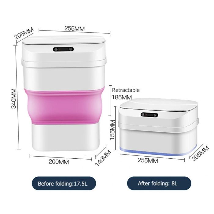 استمتع بتجربة التخلص من النفايات بدون لمس مع سلة القمامة الذكية القابلة للطي. تصميمها الأنيق والمستشعر الحساس للحركة يجعلها مثالية لأي مساحة في المنزل أو المكتب