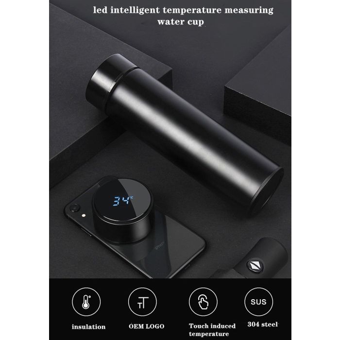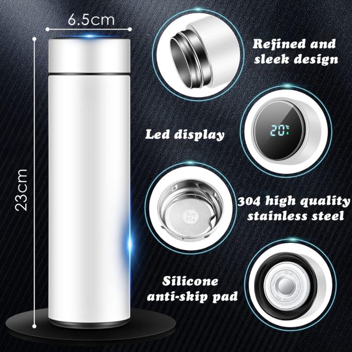 - مطارة ذكية بشاشة LED لعرض درجة الحرارة 500 مل مع قاعدة مضادة للانزلاق