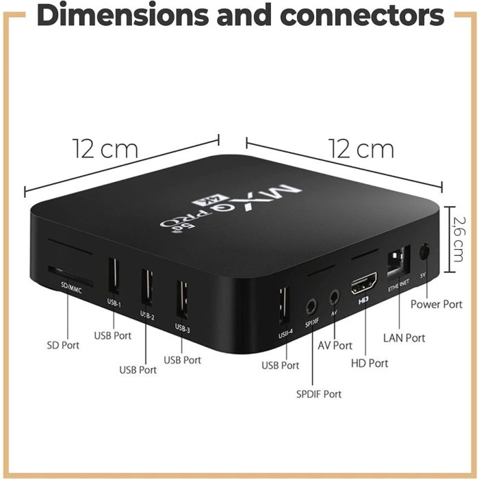 - جهاز تشغيل الوسئط المتعددة أندرويد لاسلكي دقة 4K Ultra HD 5G من MXQ Pro