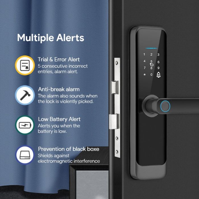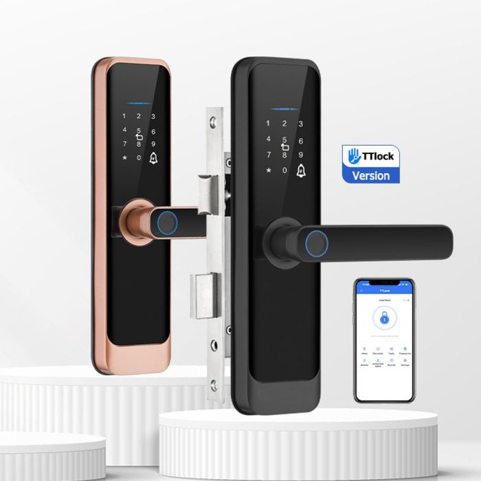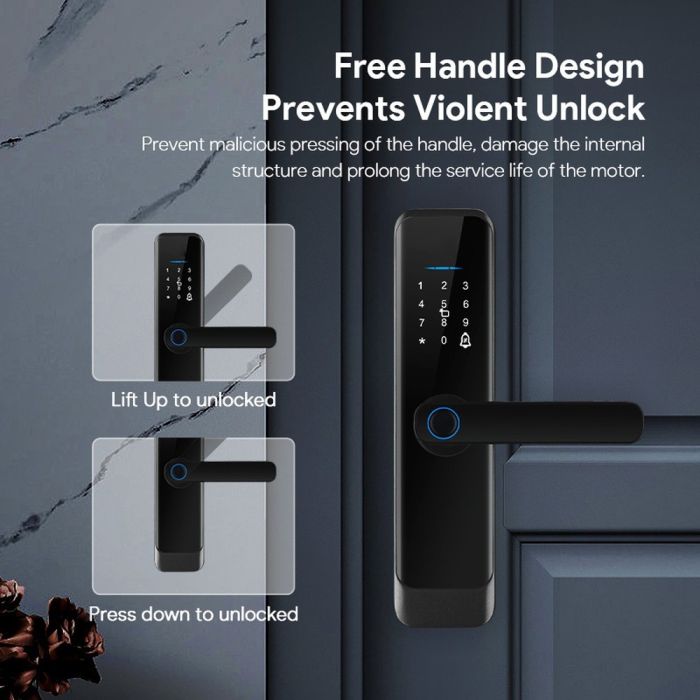 عزز أمان منزلك مع قفل TTlock الذكي A270 H03 المصمم خصيصًا للأبواب الخشبية. يعمل ببطاريات Alkaline AA القابلة للاستبدال بسهولة، ويجمع بين الأمان المتطور وسهولة الاستخدام بفضل طرق الفتح المتعددة مثل كلمة المرور، البصمة، البطاقة الذكية، أو تطبيق الهاتف. يوفر تحكمًا ومراقبة عن بُعد عبر تطبيق TTlock، مع إمكانية إنشاء أكواد مؤقتة للضيوف أو الزوار. يتميز بتصميم أنيق ومتين يناسب الديكورات الحديثة، مع تنبيه ذكي لانخفاض البطارية لضمان التشغيل المستمر.
