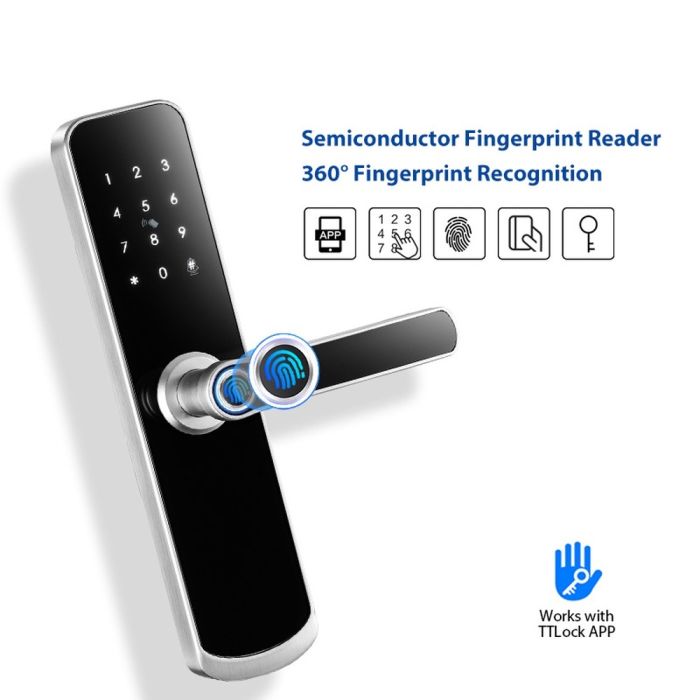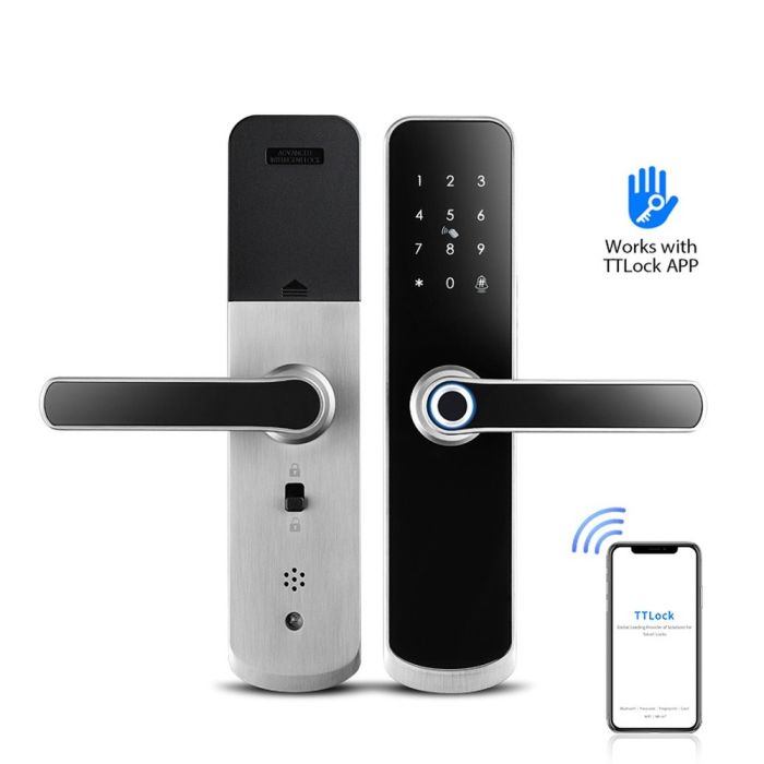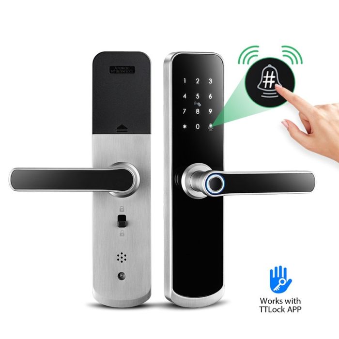 - قفل باب خشب ذكي بتطبيق الهاتف وبصمة الإصبع ( مع أو بدون تركيب)