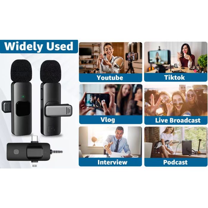 صفقة اليوم هي SMQ 3 in 1 Wireless Mini Microphone Lavalier 2.4GHz USB Type C,AUX ,IOS