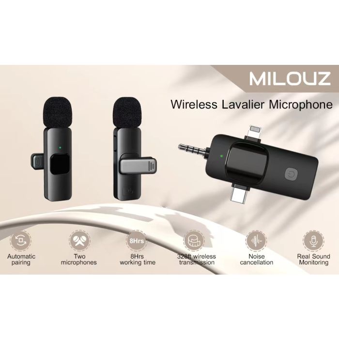 تعرف على تجربة تسجيل صوت مثالية مع ميكروفون SMQ اللاسلكي الصغير 3 في 1. يتميز بتقنية 2.4 جيجاهرتز للاتصال الفوري والتشغيل السلس. مثالي للبث المباشر، تسجيل الفيديوهات، والاجتماعات عبر الإنترنت. تمتع بصوت واضح بفضل إلغاء الضوضاء والميكروفون بزاوية التقاط 360 درجة. تصميمه خفيف الوزن ومريح يجعله مناسباً لكافة الأجهزة مع منافذ USB-C، AUX، وiPhone..