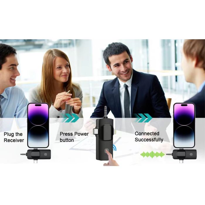 - SMQ 3 in 1 Wireless Mini Microphone Lavalier 2.4GHz USB Type C,AUX ,IOS